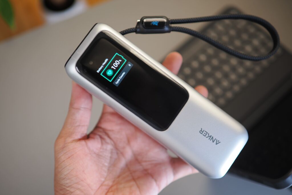 Các tính năng khác | Màn hình thông minh hiển thị điện áp, dòng điện, nhiệt độ, còn bao nhiêu % pin (Chargerlab) Cáp USB-C tích hợp (một cáp rút lui được ~2,3 ft) + cáp dây đeo (lanyard) (Anker Singapore) Hỗ trợ sạc nhiều thiết bị cùng lúc (lên đến 4 thiết bị) (Anker Singapore) |